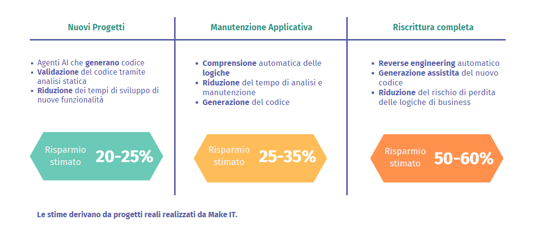 ReCode può affiancare i team interni oppure, quando le risorse non sono disponibili, Make IT può fornire supporto specialistico per accelerare il percorso.